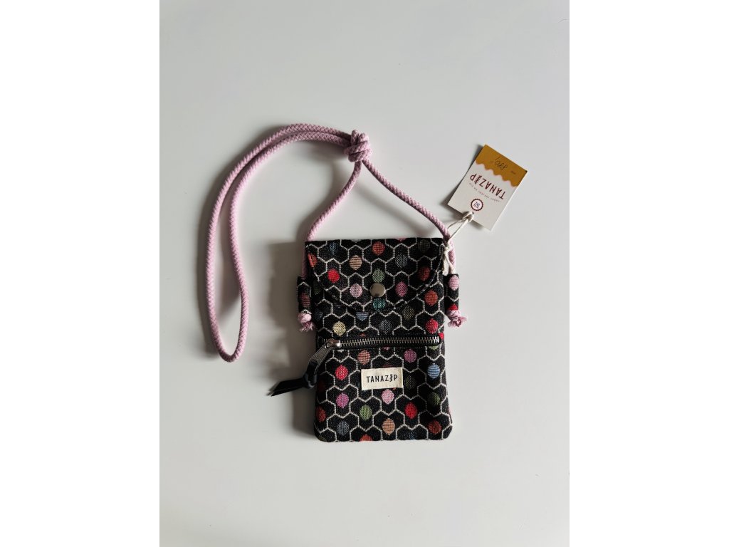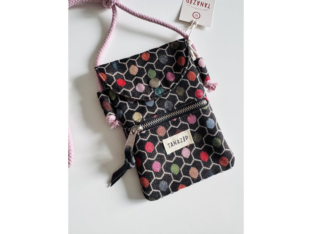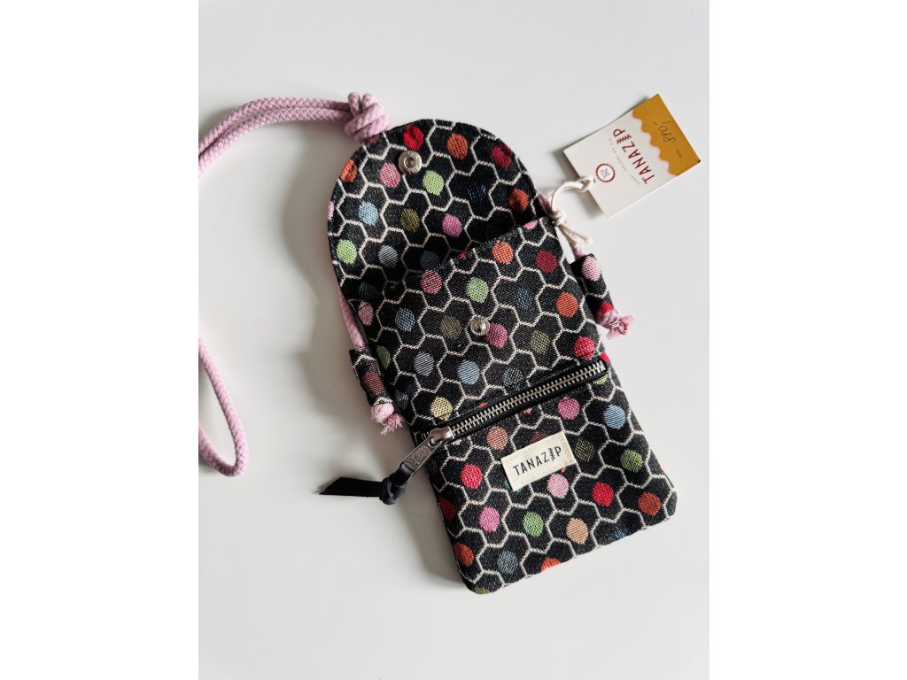 Kapsa na mobil vyniká praktickým minimalistickým designem a precizním zpracováním. Tento kousek je ušitý z gobelínové látky. Kapsa je opatřena bavlněnou šňůrkou, která je pevně uchycena uzlem, ideální pro pohodlné nošení přes rameno nebo crossbody.