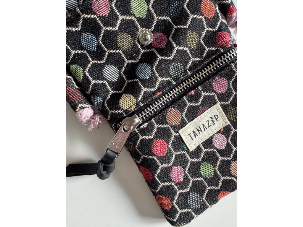 Menší kapsa na zip pojme mince, karty nebo drobné věci, hlavní kapsa na klopu s drukem je určena pro mobil, ale bez problému se do ní vejdou i kapesníky nebo klíče.
